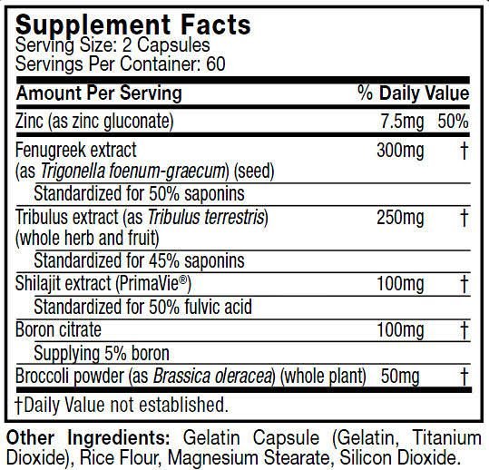 2 PrimaVie®، هو أحد أشكال القوة السريرية للشيلاجيت الحاصل على براءة اختراع، ثبُت أنه يزيد مستويات أدينوسين ثلاثي الفوسفات في 15 يومًا فقط، ويزيد بشكل كبير مستويات هرمون التستوستيرون في الدم في 90 يومًا. كما ثبُت أن جرعة دقيقة من جلوكونات الزنك – وهو شكل ممتاز من الزنك عالي الامتصاص – يساعد في الحفاظ على إنتاج هرمون التستوستيرون بشكل مثالي ضمن النطاق الطبيعي والصحي.