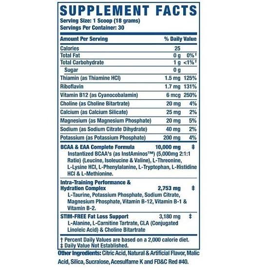 هناك ثلاثة متفرعة سلسلة الأحماض الأمينية Leucine، ايزو-ليوستين وفالين. هذه BCAA دعم تخليق بروتين العضلات, تقليل انهيار العضلات أثناء ممارسة الرياضة وتحسين أداء ممارسة الرياضة. Instantized يعني أنه يمزج ويمتص بكل سهولة.