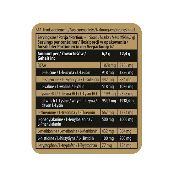 اخلط جرعة (6،2 غرام) EAA مع 250 مل من الماء البارد. كمكمل غذائي تستهلك 1-2 حصص يوميا . في أيام التدريب تأخذ 1 جرعة قبل أو أثناء أو بعد التمرين.