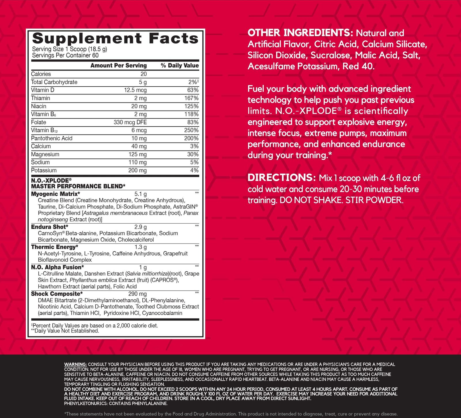 زود جسمك بتقنية المكونات المتقدمة للمساعدة في دفعك إلى تجاوز الحدود السابقة. تم تصميم N.O. XPLODE وفقًا لأساليب علمية لدعم الطاقة المتفجرة، والتركيز الشديد، والتعزيزات القصوى وأقصى أداء مع القدرة على التحمل أثناء التدريب.