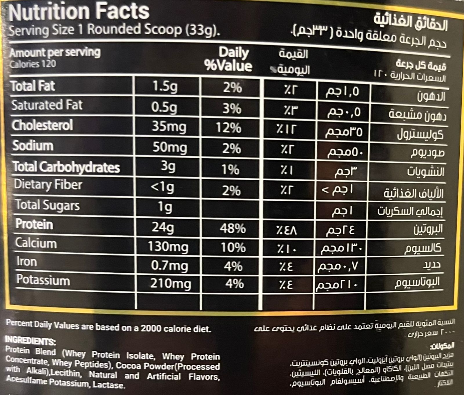 كل جرعة تحتوي على 24 جرام من البروتين عالي الجودة وسريع الإمتصاص اللي جسمك محتاجه لبناء كتلتك العضلية، و يحتوي على 5.3 BCAAs، و 4.2 جرام من الجلوتامين اللي بيساعدك على إستشفاء عضلاتك
