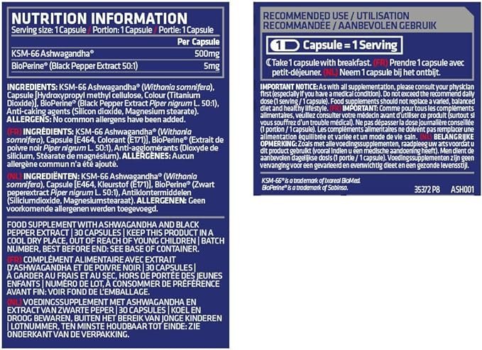 | KSM-66 اشواغاندا | 500 ملغ |