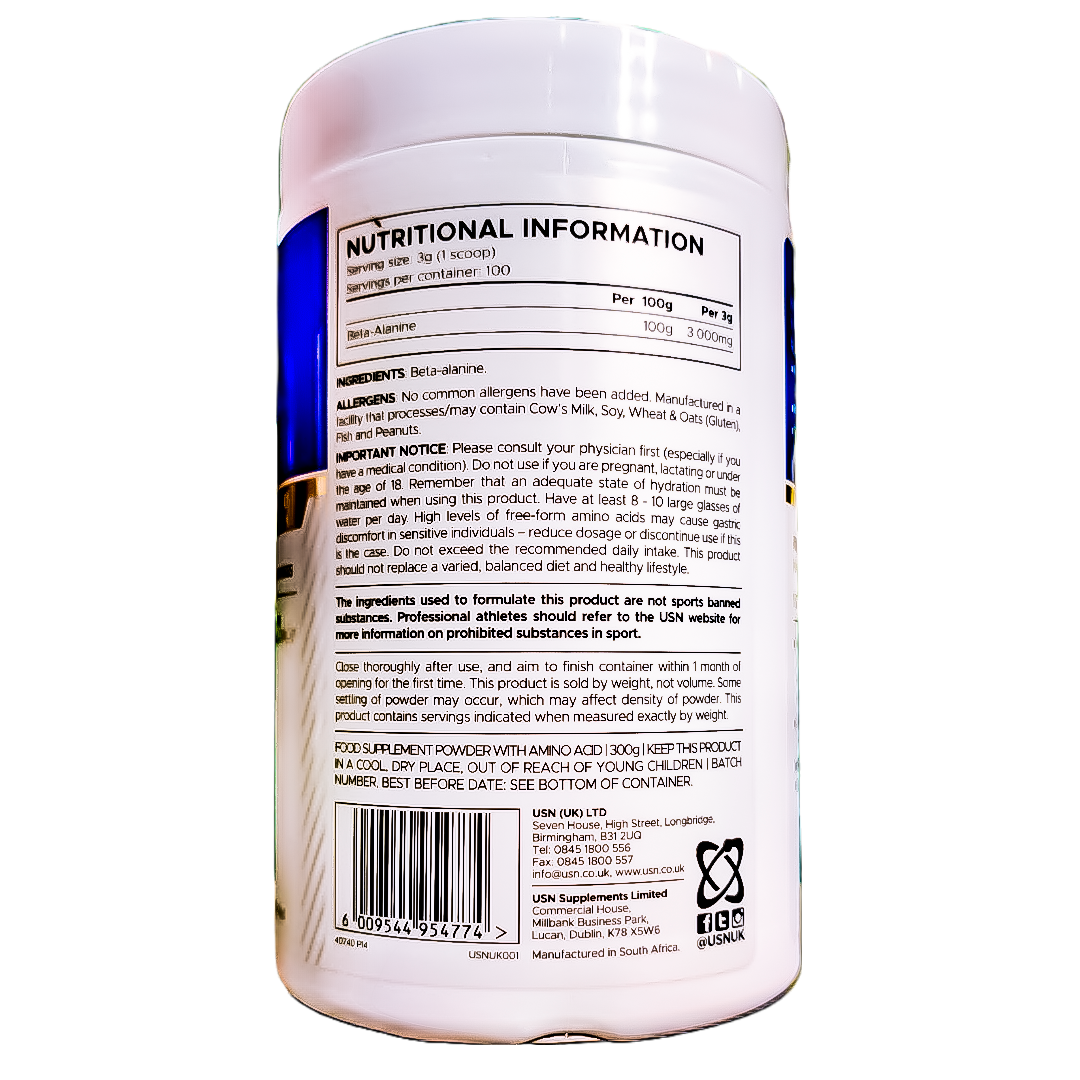 المكونات المستخدمة في تركيب هذا المنتج ليست من المواد المحظورة ممارسة الرياضة. يجب على الرياضيين المحترفين الرجوع إلى موقع الويب USN للحصول على مزيد من المعلومات حول المواد المحظورة في الرياضة.