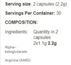 المكونات: أرجينين ألفا كيتوغلوتارات (AAKG) ، الجيلاتين (مكون كبسولة)